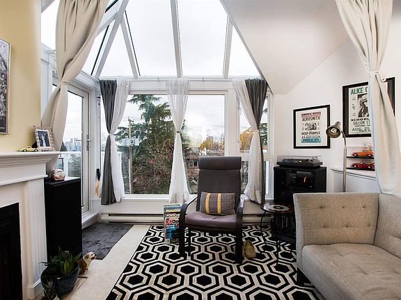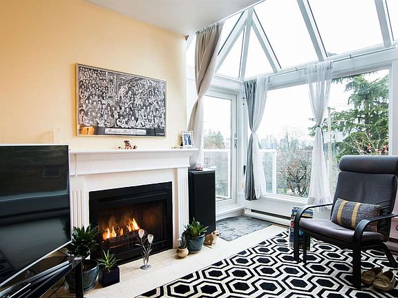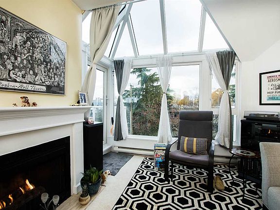 Welcome to Augustine Gardens, located in the heart of Kits, close to transit and the future skytrain station, as well as all the convenient shops and amenities of West Broadway. This well designed unit is located on the TOP FLOOR with a beautiful CITY AND MOUNTAIN VIEW, has a VAULTED CEILING with SKYLIGHTS, is located on the quiet side of the building and comes with INSUITE LAUNDRY and one PARKING stall. Come and enjoy the cozy GAS FIREPLACE, open kitchen and 2 balconies. The building has had numerous updates including a full rain screening, new windows and doors, balcony membranes and totally re-piped in 2017. A great place to call home.