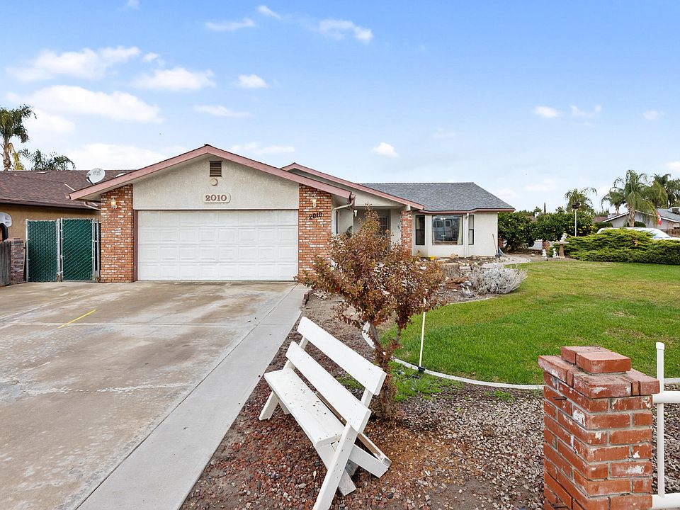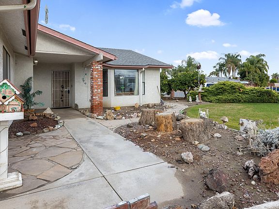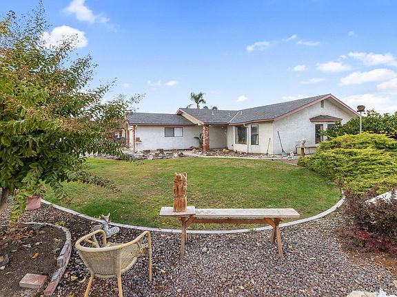 Opportunity is knocking! This home sits on a spacious corner lot in northwest Porterville and is perfect for those who want a low maintenance exterior and plenty of room for extra parking. There's extra cement at the widened driveway, west side yard with 30 amp hookup for RV, and RV parking in back through the double gate. Whether you choose to use the cement areas for extra parking, storage, play areas, or anything else, you'll find it to be easy to care for. You'll also enjoy the oranges and grapefruit the fruit trees provide and the shaded patio area in the back yard. The living room is spacious and there is also an open concept area where the kitchen opens to the family room with floor to ceiling brick fireplace that's perfect to enjoy this time of year. A large breakfast bar at the kitchen is where friends and family can gather while visiting with the cook. The master suite has a walk in closet, cabinetry and bathroom with door to the back yard. Both this door and the front door have security screen doors. The indoor laundry area has built in cabinetry and both gas and electric dryer hookups. Extra storage and ceiling fans are throughout the home.