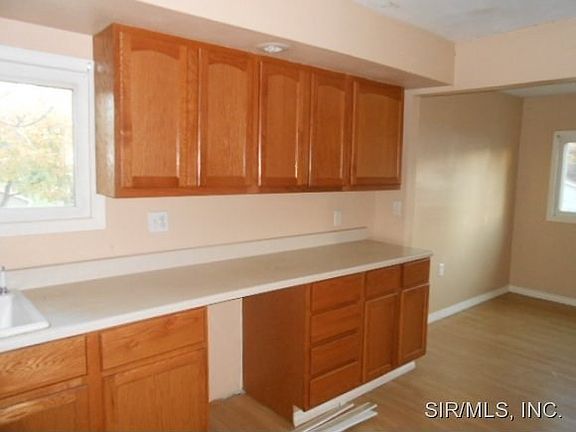 What a great deal! Large Kitchen with nook, and newer cabinets. Replacement windows. Large covered front porch and enclosed back porch. (you could move washer & dryer hook up to this area)