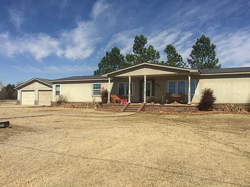 Permanently affixed 4 bedroom 2.5 bath mobile home on 5 acres with pond, 2 car detached garage & 35X60 shop with car lift.