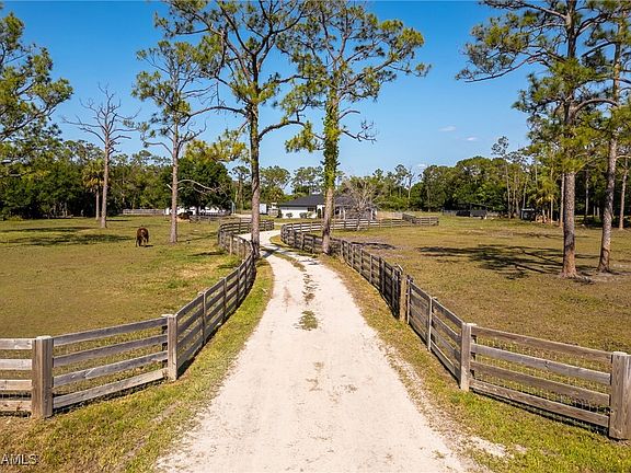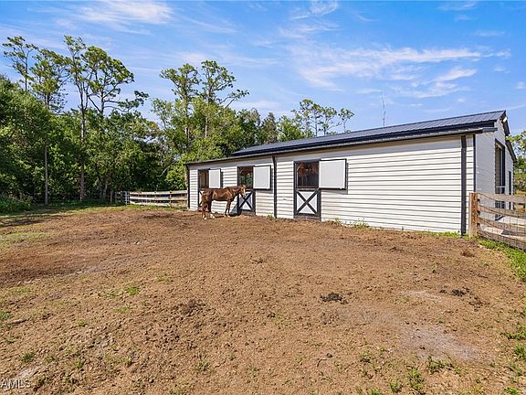This beautifully updated property is a rare find for horse lovers and those craving space, comfort and modern upgrades. This 3 bedroom, 3 bathroom home sits on 5 cross-fenced acres with 3 pastures, a stocked pond and a gated entrance. The 2020-built 36x48’ cat 5 hurricane-rated steel barn includes five 12x12’ stalls with stall mattress systems, a climate-controlled tack room, concrete alley, wash areas, hay storage and direct access to two turnout pastures and a catch pen. There’s also a 36x12’ lean-to pole barn and a custom chicken coop. Inside, enjoy the remodeled interior with tile floors throughout. The open-concept living, dining and kitchen space is both the heart and highlight of the home! Updated in 2023, the kitchen offers ample cabinetry and countertop space, a coffee/dry bar, a large island, quartz surfaces and sleek stainless steel appliances. The primary suite offers private access to the outdoor oasis and includes a stylish dual-sink vanity, a soaking tub and an oversized shower with multiple shower heads. On the opposite side of the home, two additional guest bedrooms provide comfort and flexibility—one featuring its own en-suite bathroom, making it ideal for guests, children, or those looking for an in-law suite. Step through the sliding glass doors to a stunning outdoor retreat featuring a heated saltwater pool and spa (2023) with LED lighting and secure safety fencing if desired. Additional upgrades include a new AC system and ductwork (2023), roof (2022), custom built-in entertainment center, whole-home generator hookup and a Life Source water purification system. Exterior improvements continue with a 2024 millings driveway to the barn, a new gravel parking area, seamless gutters, automatic gate and a brand new well and pump. This property is truly offers modern comfort, thoughtful upgrades and the best of country living. Schedule your private showing today!