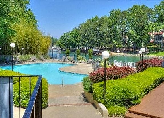 Beautiful FULLY FURNISHED lakefront condo with a water and pool view located one mile west of Exit 28 from I-77. WATER, SEWER, TRASH, HIGH SPEED INTERNET AND ELECTRICITY INCLUDED. This location is a short walk away from the Hello Sailor Restaurant on Lake Norman and close proximity to numerous restaurants, bars, and grocery stores. Located on the third floor with a vaulted ceiling this condo was completely renovated in 2017. Both the master and guest bathrooms include luxury digital temperature controlled rainfall showers, Italian stone, dimmable vanity and in shower lighting, and crown molding. This unit also includes granite kitchen countertops, wooden dining table, sectional couch, bar, high efficiency washer/dryer, wood burning fireplace, and an outside balcony with an electric bistro grill. Summer time access to the pool and a recreational kayak is also included for this rental. Criminal background check and credit check required and minimum of 6 month lease required by the Windward HOA. Ask about longer term leasing options. Thanks for viewing! FULLY FURNISHED RENTAL with background and credit check required.