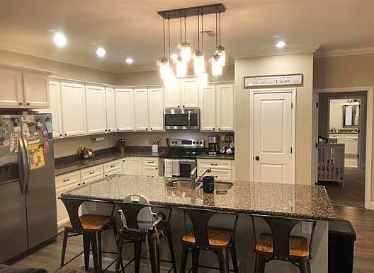 3/2 (Spanish Gates) Beautiful 3 bedroom home with a split floor plan close to downtown Highsprings area and a quick drive to Ichetucknee Springs. Home greets you with a well manicured lawn and large front porch. Entry foyer with built-in seating and coat racks leads to a great room. Vinyl wood flooring and high ceilings throughout. Custom light fixtures and fans. Covered back porch & privacy fenced backyard. Kitchen boasts a large island dining/serving bar with a sink, granite countertops, stainless steel/black appliances, and gorgeous custom white cabinetry. Spacious dining room includes large windows offering lots of natural sunlight. Master bedroom includes upgraded carpet. Master bathroom displays a raised double sink vanity with granite counter tops, custom mirrors and light fixtures, window offering extra sunlight, custom shower with tile, recessed shelving, separate toilet room, and a large master closet. Hallway has ample room for a study or play area. Hall bathroom features tiled flooring, raised granite vanity, custom mirror and light fixtures, and a tub and tiled shower combination. Guest bedrooms also display upgraded carpet. Utility room. 2 car attached garage.