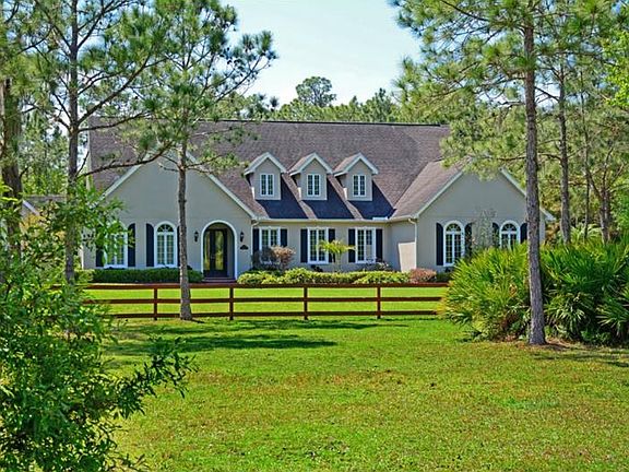 This 10 acre estate home boasts over 4800 square feet including a detached guest house that is over 480 square feet. It also features a 3 stalls stable that can be increased to 6. The first floor of the main home has a resort style master bedroom with french doors leading to a very private pool and backyard oasis. The luxurious master bathroom has his and her sinks, walk in closets, garden tub, and an inviting walk in shower. Also on the main floor are 2 additional bedrooms, a living room, dining room and a family room with an elegant stone fireplace. The open kitchen has stunning blue pearl granite countertops and backsplash . The wrought iron staircase adjacent to the kitchen leads to the 2nd floor which has 2 bedrooms, bathroom and a large bonus room/game room ideal for entertaining. The large studio style guest house has a full bathroom and a kitchenette. The guest house overlooks the pool and has its own private entrance. The entire property has Kinetico water system. This home is located in Panther Ridge which offers ponds, park, hiking/horse trails and grazing pastures. It is ideally situated in a very secluded and picturesque setting with access to local beaches, shopping and entertainment. Whether you are a nature or an equestrian enthusiast, you will find this gorgeous property has so much to offer, and with 10 acres the sky is the limit.