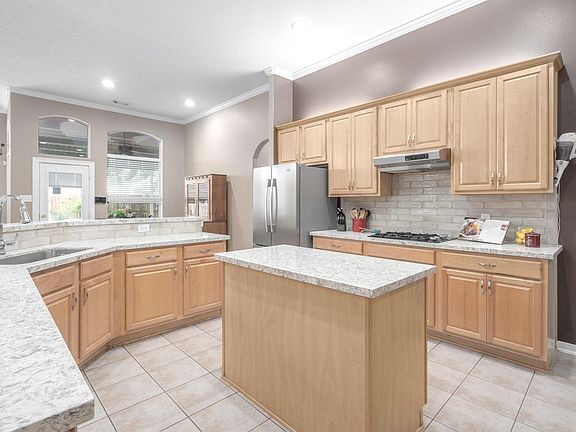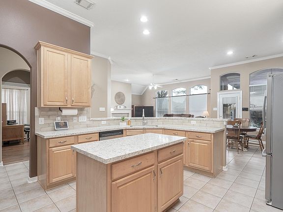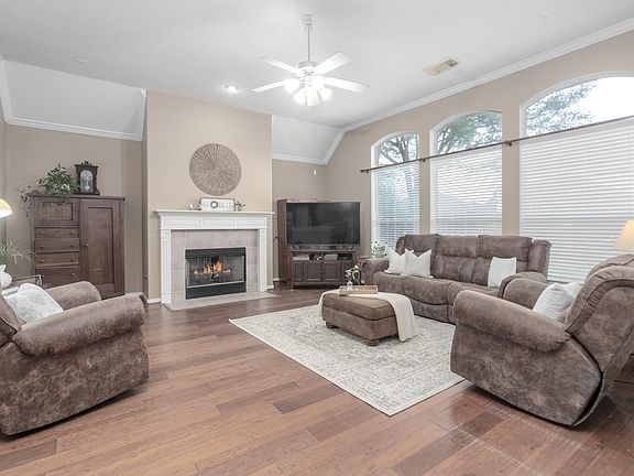 This lovely 4 bed/2.1 bath home offers a terrific split plan! Greeted by gorgeous landscaping and large trees that elegantly frame the facade, you'll feel welcome right away! A tiled entryway reveals an intricate recessed wall on the left, crown molding, and a charming dining room on the right. Beautiful hardwood floors lay in the dining room, living room and bedrooms. The dining room opens to an airy island kitchen with quartz countertops and a subway tile backsplash. Enjoy plenty of counter space to prepare your favorite meals with an open view of the living room. A comfortable family room features a gas fireplace and floor to ceiling windows. A spacious primary suite, located in the back, provides room for a variety of furniture set ups. The primary bath contains a jetted tub, a separate shower, and a magnificent walk-in closet! Relax outdoors on a backyard covered deck near a large shade tree. The home includes a 3-car tandem garage and rests in a lovely golf club community. Pets are case by case basis and will be $250 deposit per pet.