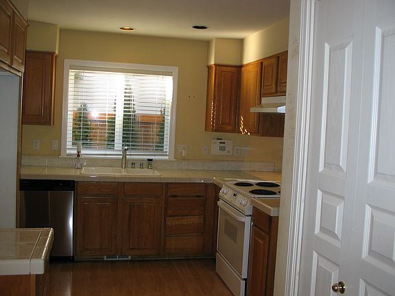 Well designed 4 bedroom, 2.5 bath home with many great features. Vaulted ceilings and wainscoting in formal dining room. Gas fireplace with TV nook in family room. Kitchen with tile countertop, built-in appliances, and pantry. Master suite with vaulted ceilings, skylight, walk-in closet and ceiling fan. Air conditioning, gas furnace, and hot water. Corner lot, fenced back yard, patio, and sprinklers. Needs cosmetic touches to make it really shine. (Short Sale)