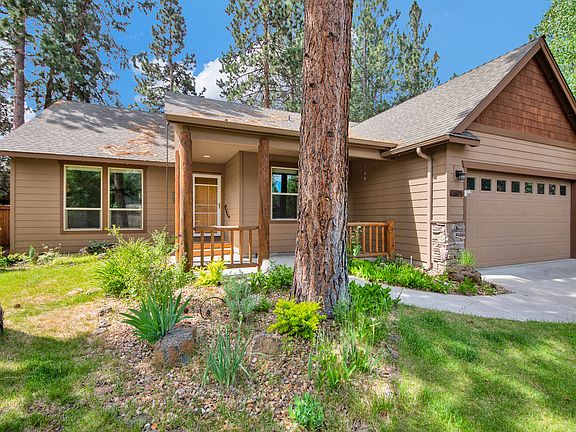 Absolutely stunning single level home nestled among the soaring Ponderosa Pines in SE Bend's Mountain Pine subdivision. Recently updated 3 bedroom, 2 bath, 1552 sqft home with updates including stone kitchen and bathroom counter tops, air conditioner installation, luxury vinyl flooring in great room, kitchen, and secondary bedroom. Open great room floor plan complete with vaulted ceilings with ceiling fan and gas fireplace with stone and wood hearth that extends into the island kitchen complete with stainless steel appliances, knotty alder cabinetry, designated dining area with outstanding natural light and much more. Private primary suite complete with coved ceilings, ceiling fan, and secluded master bath with double vanity. The fenced back yard features mature low maintenance landscaping with plenty of privacy that is perfect for entertaining. Close to schools, shopping, and recreation. Call your broker for a private tour today.