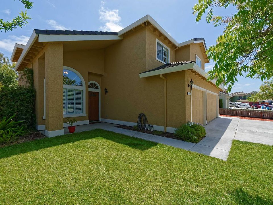 4 bed, 2 bath 2,289 sq ft. Quiet cul de sac in 1 of Hollister's premier neighborhoods. Enter to bright open living room with high ceiling. Dining area just off kitchen. Open kitchen looks out to family area. Ground floor has 1/2 bath, laundry room & 3 car garage. Upstairs landing has office space. Master bed is bright spacious with high ceiling, large master bath with separate tub & shower. Walkin closet & changing room or nursery. Located mins from Hazel Hawkins Hospital & a large shopping center.