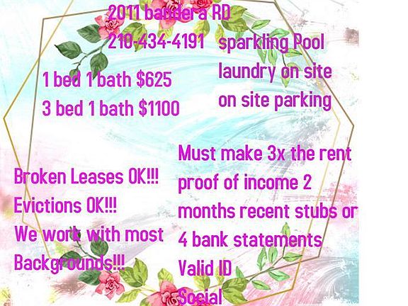 This 900 square foot townhome home has 1 bedrooms and 1.0 bathrooms. This home is located at 2011 Bandera Rd, San Antonio, TX 78228.