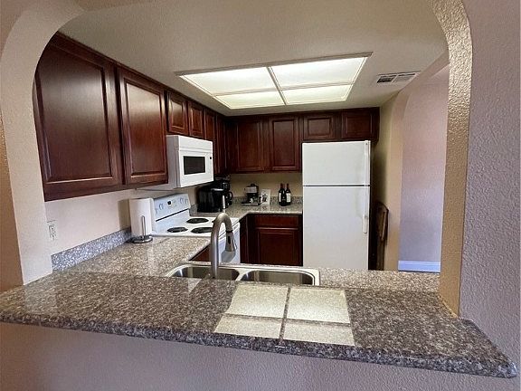 Comfort & Convenience! Beautiful 1st floor, fully-furnished 2-bedroom condo in the heart of Green Valley with assigned parking just minutes from hospitals, the airport, shopping, and dining. Everything's ready for you, including utilities, WiFi, furnishings, linens, kitchenware, and more so you can settle in and focus on what matters most. Upgraded laminate wood floors, a modern, fully equipped kitchen with granite countertops, stainless steel appliances with all cookware and utensils included just bring your suitcase! The primary bedroom features a cozy bed, ceiling fan, spacious walk-in closet & an ensuite bath with double sinks, granite countertops, and relaxing tub/shower combo. The secondary bedroom and bath are equally inviting, with plenty of storage, mirrored closets, and a walk-in shower with granite backsplash. Step outside and unwind on one of three private patios perfect for morning coffee or a quiet evening after work.