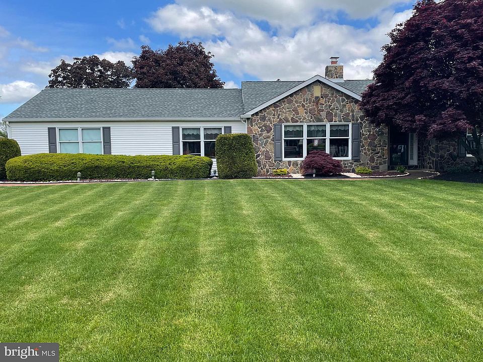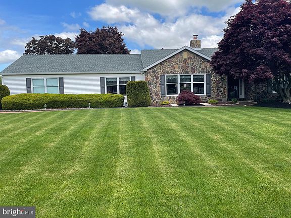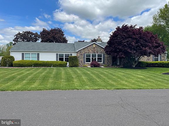 Rarely offered beautiful corner property ranch in the highly sought-after Mountain View community of Warwick Township. This spacious stone front, 3 bedroom ranch on a wonderful lot has been meticulously maintained. Enjoy the ease of first floor living as you enter the foyer which flows into large formal living room with an abundance of natural light flowing through the triple window. The formal separate dining room makes entertaining a pleasure, especially for holidays and special occasions. You'll enjoy preparing meals in the gourmet kitchen featuring granite counter tops, S/S sink and appliances, center island and beautiful cabinetry. Enjoy casual meals in the breakfast area overlooking the backyard through the triple bay window. Adjoining the kitchen is the cozy family room with a brick wood burning fireplace w/mantel. Step out to your private deck through the new Anderson double sliders. The primary bedroom complete with ceramic tiled bath with stall shower. There are 2 additional nice size bedrooms with plenty of closet space and a full hall bath. Conveniently located is the laundry area with powder room. There is an oversized two car garage with inside access leading into the kitchen. Gleaming cherry hardwood floors are throughout the living room, dining room and family room. If this isn't enough there is a huge basement with 9' ceilings for additional storage or could be finished offering additional living space for a gym, playroom, office or whatever suits your family needs. Beautifully landscaped with brick walkway and outdoor lighting. Conveniently located to shops, dining, Doylestown, Peddlers Village/Lahaska. Major highways just minutes away. Award winning Central Bucks School District.