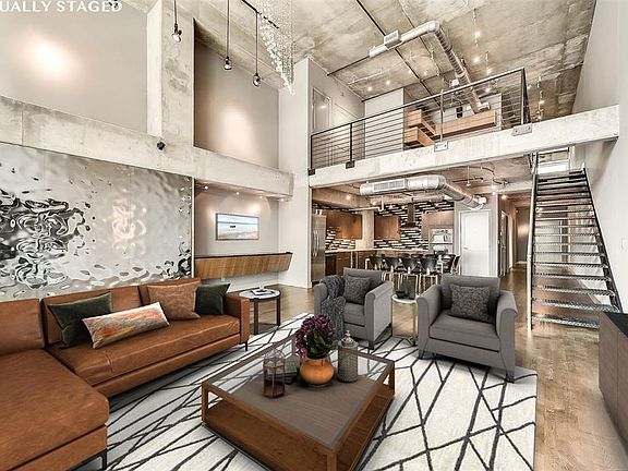 Cosmopolitan living at it's finest. This luxury mid-rise loft is located in the Harwood District near Klyde Warren Park, AAC, the Perot and Ritz Carlton. 20' wall of windows with remote control electric blinds brings in tons of natural light to the living area accented with modern hotel-style chandelier. The design provides ample locations to feature large art pieces. Kitchen and baths have updated counters and backsplash. Newly installed hardwood flooring and fresh paint June 2019. Oversized master suite with sitting area features updated bath with built-ins and custom closet system. Fabulous pool area with covered grill area. Loft area perfect for office. Low HOA dues for the area and amenities.