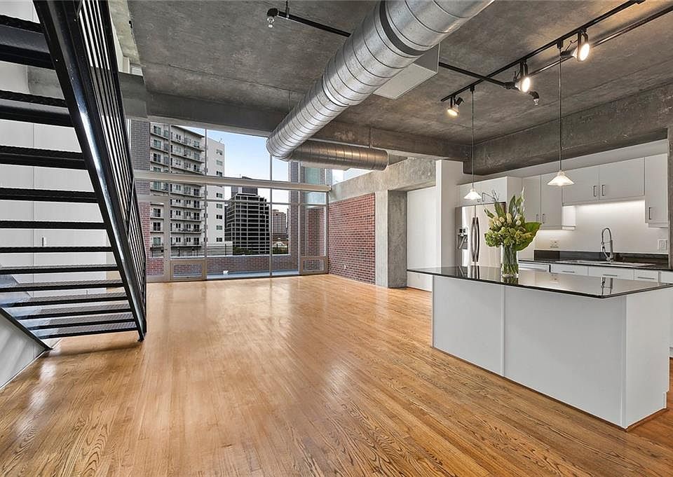 Gorgeous Uptown two-story loft with stunning city views. Highlights include bright, open layout, stained concrete floors, floor-to-ceiling windows, updated kitchen with granite overlooking the dining and living rooms, spacious guest bedroom with large closet and private bath, second level living area and huge master suite with impressive closet space and master bath. Secure entry with two assigned covered parking spaces, recently updated pool and incredible city views. The best that urban living has to offer in a private, exclusive city retreat.