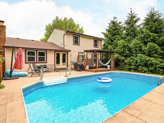 Enter this well kept neighborhood of freshly paved streets & mature trees to find 2011 Charmingfare. New concrete driveway leads to covered entryway w/ lovely landscaping & water features. Formal living room/front office w/ crown molding & recessed lighting & extending thru the first floor. The sunlit back of the home reveals only more granite & hardwood. Look past the large granite kitchen island with gas range & second prep sink to the dining room with built-in hutch. Note the granite fireplace & built-in bookshelves in the sunlit family room. Once you walk thru the French doors to the backyard appreciate the private oasis inground swimming pool. Amish crafted shed included. Master bedroom offers 2 closets PLUS walk-in closet. Sparkling bathroom is renovated. Make this home yours!