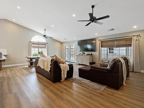 Step inside your dream home and experience the ultimate in comfort, luxury, and convenience. As you walk through the front door you are greeted with a large open living room with high vaulted ceilings. Crisp white quartz counter tops and a large farmhouse sink create an elegant and functional kitchen. There are four oversized bedrooms and two bathrooms. Both bathrooms with double sinks. Master suite has newly remodeled walk in shower. You will also find French doors from the master suite leading to the backyard. Entertain family with an outdoor bult in cooking space and a refreshing pool. Not only does this home offer a spacious layout, but there is also plenty of room for ''toys''. A three-car garage plus potential RV parking. To top it off paid solar panels. Schedule a private showing for yourself and discover the potential of this becoming your dream home.