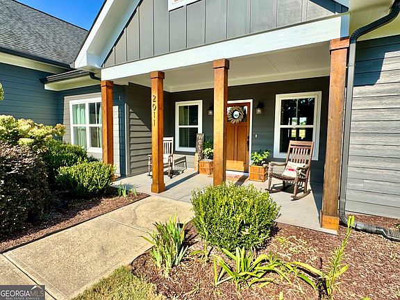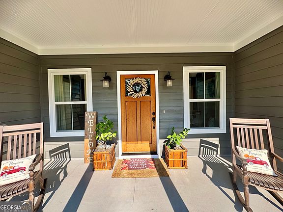 Discover this beautifully designed 3-bedroom, 3-bath Craftsman-style home nestled on 2.13 acres, just minutes from historic downtown Madison. With timeless curb appeal, inviting porches, and thoughtful details throughout, this home blends classic character with modern convenience. Step inside to an open floor plan featuring a spacious great room with hard wood floors, and abundant natural light. The kitchen offers granite countertops, breakfast area, and an island perfect for entertaining. Just off the kitchen, you will find a spacious laundry room and a separate full bath. The main-level owner's suite is a true retreat with double vanities, walk-in shower, and soaking tub. On the other end of home you will find two additional bedrooms with a Jack and Jill bath to provide comfort for family or guests. Upstairs you will find a large bonus room offering flexible space for a home office, playroom, or media room. Outside, enjoy your morning coffee and evenings on the covered porch with fireplace, or around the fire pit with peaceful views of the surrounding countryside. With 2 acres of space, there's plenty of room for a garden, pool, or shop. Located in desirable Morgan County and only minutes from shopping, dining, top-rated schools, and I-20, this home offers the perfect combination of privacy and convenience.