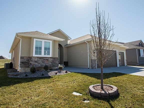 Immaculate Woodland II Ranch plan. Located in Alexander Creek, Raymore's premier 55+ maintenance provided community. Lots of great features, including beautifully stained custom cabinets with 2-tier granite top on kitchen island, large walk-in pantry, expanded laundry area and mud room, partially covered back patio, lots of windows to let in plenty of natural light, amazing master suite, and level 3 car driveway. Tons of space in the basement for future finish or hobby area.