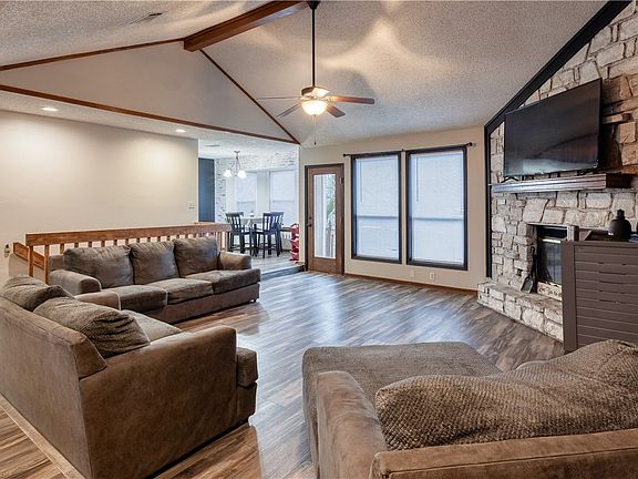 Welcome to this spacious two-level home offering 5 bedrooms, 2.5 bathrooms, a three car garage, and multi-level deck! The main level features a living room, kitchen, formal dining room, breakfast nook, oversized laundry room, primary bedroom, a secondary bedroom, and 1.5 bathrooms. Recent updates on the main level include luxury vinyl plank flooring and new kitchen appliances! The living room boasts vaulted ceilings, and a stunning rock fireplace. There is access to the deck from the living room-perfect for entertaining! The lower level is complete with a versatile flex room with a wood-burning stove, three additional bedrooms, and a full bathroom. The lower deck can be accessed from the flex room. This home offers walk-in closets, extra storage, a newer roof, and plenty of room for the whole family! Just minutes away from the golf course, schools, and Highway 96! Schedule a showing today!