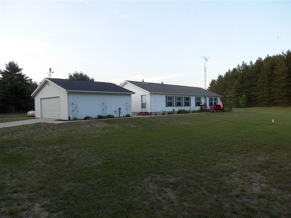 Nice 3 bedroom home just a stone's throw from the Jordan River. Ranch home with a detached two car garage and a 36' x 40' pole building, with 10' ceilings, for all your storage needs. Home is minutes from the Jordan Valley, offering hundreds of acres of state owned property for all your outdoor activities. A exterior wood burning furnace offers the relief from propane cost. This home was built in 2004 and has been well maintained.