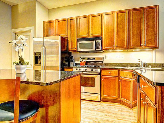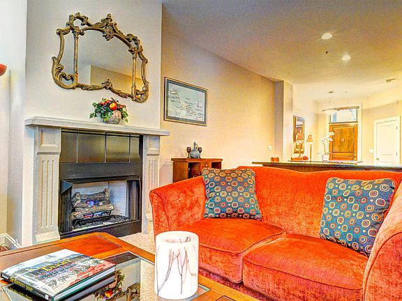 Beautiful 2nd floor condo in wonderful location! 10' ceilings, gleaming hardwood floors, pristine carpet, and great interior design. Kitchen has granite counter tops, center work island w/breakfast bar, gas range, stainless steel refrigerator, and ample cabinets. Both spacious BR have walk-in closets & private baths - master BR has 2 walk-in closets & balcony access. Great rm/dining area has gas fireplace & balcony access. Assigned parking space AK for this unit. Common elements include an elevator, fitness room, rooftop terrace & landscaped courtyard. Many guest parking spots plus parking lot located across street from building entry. Monthly condo fee of $207 includes water, sewer, gas, trash/recycle, snow removal, grounds & exterior maintenance, master insurance.