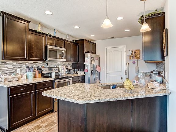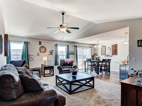 What an amazing newer home. Tons of upgrades including stone front, upgraded kitchen cabinets with granite counter tops. Bath vanities have solid surface counter tops. All 3 bedrooms have walk/in closets. Upgraded flooring, Solid 6 panel doors. Huge back concrete patio, Pond view, Master bedroom has cathedral ceilings, SS appliances, Attached Shed, Double hung windows for easy cleaning, Finished garage with floored attic, Water softener, Carrier Furnace and quality blinds. Oversize Tub.