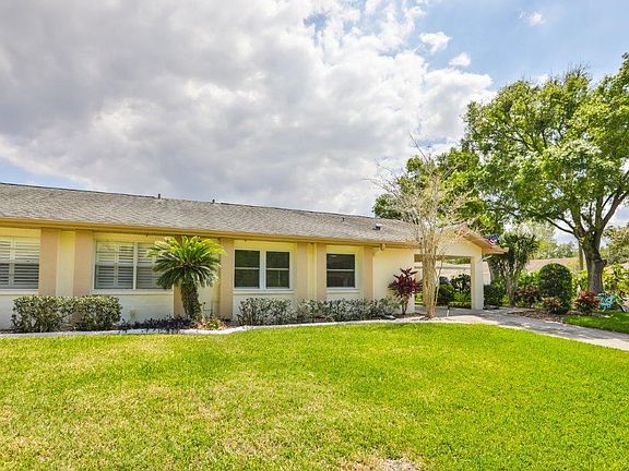 TAKE THE 3D VIRTUAL TOUR. COME HAVE FUN UNDER OUR SUN! TERRIFIC OPPORTUNITY FOR FULL OR PART TIME LIVING. CENTRALLY LOCATED IN KINGS POINT IN SUN CITY CENTER. APPROVED FOR ONE PET UP TO 35 LBS! As you drive to this home you will appreciate how it is situated on a circle with nice privacy. Cypress III 2 bedroom (split) 2 bath condo with attached carport. Enjoy the light, bright AIR CONDITIONED FLORIDA ROOM ADDING AN APPROX. 140SF OF LIVING SPACE, with storm shutters and extra storage. Newer thermal pane windows on all the living area windows, CPVC plumbing and newer electric panel cleverly hidden in the kitchen. Laundry inside with stack washer/dryer. Kitchen is nicely redone with wood cabinets & extra storage, smooth top range and recessed lighting. Bath vanities are newer with wood lower cabinets. Ceramic tile floors throughout with carpet in both bedrooms. Silver KPW in place to prorate to the buyer good through 2/28/21. Available for immediate occupancy. Furniture & furnishings available under separate bill of sale. Live in the wonderful gated golf community of Kings Point where your 2nd car is a golf cart w/ state-of-the-art recreation facilities, indoor/outdoor heated pools, fitness centers, computer labs, arts & crafts, auditorium seating 800+, tennis, pickleball, lawn bowling & over 200 clubs and activities. Conveniently located to Tampa, Sarasota, St. Petersburg, Tampa International Airport, shopping, dining, beaches, theaters & sporting events.
