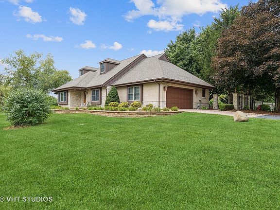 This is your dream home! This sparkling 4 bedroom, 3 1/2 bath, stone and cedar home sits on 8.3 acres, is zoned A-1, and is just minutes from the historic Woodstock Square and the METRA. Impeccably maintained, you are going to fall in love with this very comfortable and well appointed home. Your first floor layout features a wide open kitchen/family room area. Your kitchen offers a supersized granite island and all counters are granite as well. There are all built-in appliances that come with the home. The family room is loaded with can lights and features a beautiful wood burning stone fireplace. There is a grand foyer, a formal dining room, and a custom built office for your at-home office needs or home schooling. The spacious first floor master suite offers a bath with walk-in shower and a whirlpool tub. There is also another good sized bedroom on the first floor. Also on the first floor , there is another full bathroom and a mudroom with deluxe built-in nooks. Upstairs, there are 2 large bedrooms, a full bath, and a walk-in attic storage room that could be converted into additional living space. Now for a real treat, there is a finished basement that features an incredible wet bar with the bar stools. There is a large L-shaped recreation room that comes equipped with a full size air hockey table. There is also a den, the laundry/storage room, and a half bath. The walls of the entire recreation room and bar area are finished with solid cedar siding. JUST IN, THE SELLERS HAVE JUST REPLACED THE WATER HEATER 10/7/2021 NOTE: The basement intercom system comes in "AS IS" condition. Now let's head to the outside. The best way to get there , is through the spacious 15 x 16 Florida room, a great entertainment space to enjoy, rain or shine. From there you can go to your very large concrete patio that connects to your deck, which overlooks the above ground pool. For extra privacy, the patio, deck, and pool/yard area are totally fenced in. Located on 8.3 acres, it allows you to have horses and other animals, with loads of family space and garden areas. A real asset for you will be the 36 x 56 metal sided workshop building that has a full concrete floor and a private office space. The building has its own 100amp circuit breaker box and there is a fully ducted-in heating and air conditioning system. The furnace is propane fired but both the furnace and air conditioner have not been used in several years and are being sold in "AS IS" condition. For raising small animals or chickens, there is already a nice shed with a fenced in area around it. Your front entry asphalt driveway is less than one year old. NOTE: This is an all electric home but natural gas is now at the road so the new owner could bring it into the home. In move-in condition, the Seller is also providing a CHOICE HOME WARRANTY to the new owners. The Sellers can provide a quick closing so schedule an appointment to visit your new home today.