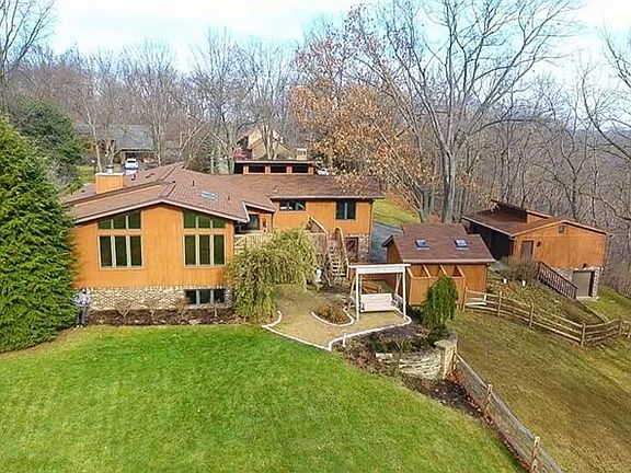 One of a kind contemporary ranch home on serene 7.47 acres. Beautifully landscaped cul-de-sac location. Excellent for entertaining indoors and out. Gorgeous natural light and stunning views highlight this 5 bedroom, 4 full bath home. Open, flowing floor plan, huge eat-in kitchen with solid surface counter tops. Main floor also includes living room, dining room, library/den, bonus room that opens to large deck with great views, four bedrooms including huge master with on suite and his & her walk in closets. Finished lower level with gameroom, 1 bedroom, full bath, wet bar with refrigerator, office with oak built ins, laundry with new LG washer & dryer, bonus room and storage rooms. Additional features include, 2 car integral garage, 2 car oversized detached garage, fabulous garden shed with skylights and indoor workshop. Check the attached list of upgrades too numerous to mention the sellers have made in just 3 years!