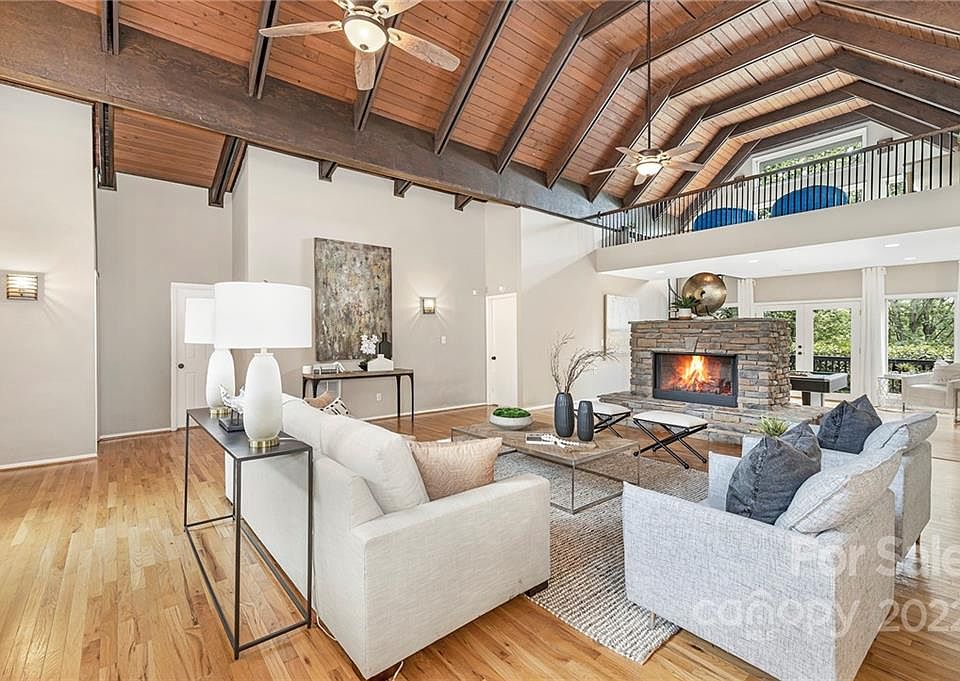 Welcome to Tega Cay! This custom transitional home with soaring ceilings and gorgeous wood beams that span the great room will make you feel like you are living life in Paradise! The main floor offers 3 bedrooms, 2 full bathrooms and an updated gourmet kitchen. Step out onto the oversized deck where you might be able to catch a few deer hanging out. The spiral staircase leads you upstairs to a loft that offers winter views of Lake Wylie! This home also has a basement, complete with a rec room for further entertaining, as well as a full bathroom and 4th bedroom. Looking for a home that makes you feel like you are on vacation? This is it. Come experience life in Tega Cay! Located just 30 minutes from CLT airport and Center City, it is nestled minutes from a golf course, multiple parks, as well as multiple boat docks. No HOA and top rated schools! The perfect place to relax and call home!