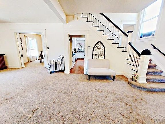 Gorgeous Move In Ready Victorian in Pueblo's Historic Northside District! Nestled on a shady street within easy walking distance to Mineral Palace Park and Parkview, this home features comfort, class, and quality craftmanship. The covered front porch invites you to sit and swing while watching the birds visit the mature trees in the front, while the back yard is designed for entertaining with a deck, and brick patio! This home features plenty of space for gathering, with an oversized living room, formal dining and bonus living room with a built in fireplace. Original Pocket doors let you control the openness of the floorplan. The kitchen features black granite countertops throughout as well as built in cabinets that provide tons of space! Laundry is conveniently located on the main level, along with a half bath. Walking up the grand staircase, you will find four bedrooms and two bathrooms, a 3/4 bath accessible from the hallway, and a full, private ensuite bathroom attached to the primary bedroom. This home has been lovingly cared for through the years, and is ready for you to call it home! Schedule your showing for this iconic home today!