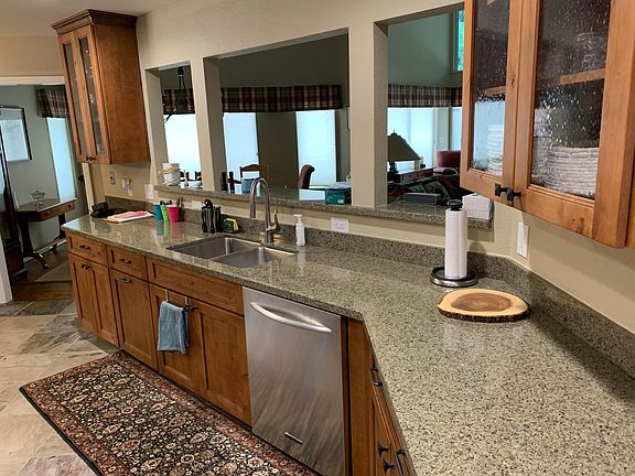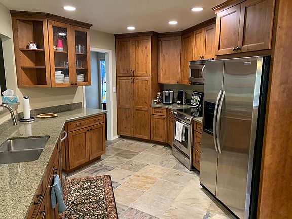 On 1.5 lots - no house will ever be built next door. Remodeled kitchen and bathrooms - slate, granite, tumbled marble, knotty alder cabinets. Hardwood flooring in main living areas. Great room includes large dining area, vaulted ceiling and stone fireplace.