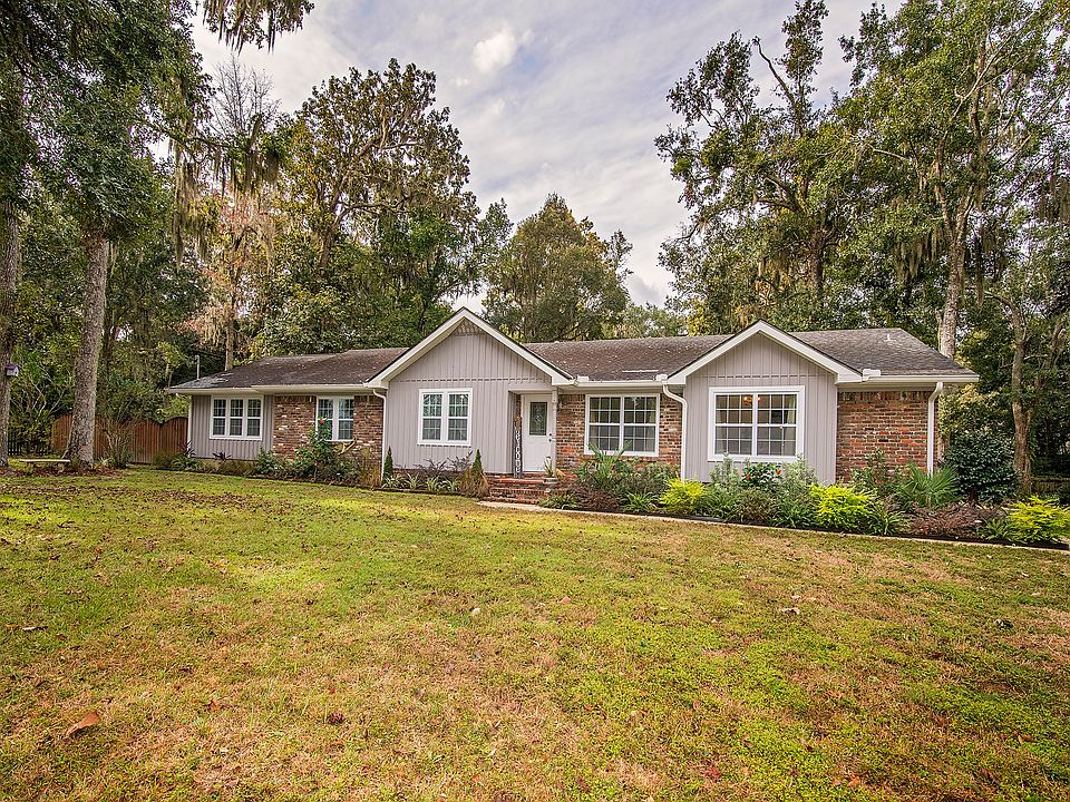 Are you looking for waterfront but do not want to pay a waterfront price? This house has been tastefully updated and offers a "private getaway" feel. SPACIOUS 3 bedroom 3 bath home situated on an almost one acre lot with beautiful oaks. Home has 2 master suites. The main master includes sitting area that would be perfect for nursery or office/study. This property also includes a deeded piece of waterfront that is literally just out the back gate, Perfect for an outdoor living area. Waterfront includes pier that was damaged by storm last year. This would be perfect location to pull the boat up for the day. You do not want to miss your opportunity to own waterfront on a very sought after area.