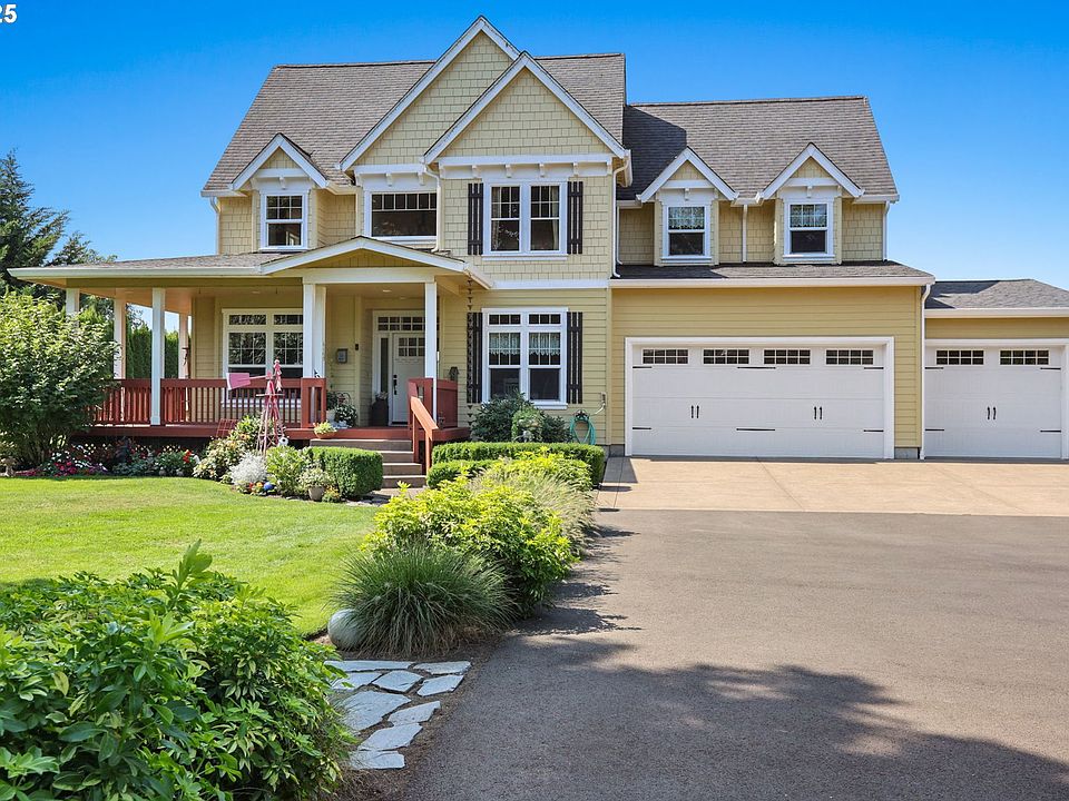 Welcome to your dream property! This farm-style estate on one park-like acre offers the perfect blend of timeless charm and modern convenience. Designed for multigenerational living or income production, this rare find includes a stunning main residence and adorable guest cottage, ideal for long or short-term rental, extended family, or visiting friends. Main Residence - Farm-style home with wraparound porch offers hickory wood floors, soaring vaulted ceilings, and an abundance of natural light. The living room centers around a cozy propane fireplace, while the formal dining room boasts beautiful built-ins. The kitchen impresses with new double ovens, a built-in microwave, a generous pantry, an island with a sink and eating bar, and a charming breakfast nook w/built-in bench seating and storage. The primary suite is a retreat of its own with French doors opening to the deck and serene views of the beautifully landscaped backyard, a spacious walk-in closet, and a spa-inspired bath featuring double sinks, a walk-in shower, and jetted tub. Upstairs, discover a versatile 5th bedroom/bonus room w/a large walk-in closet, two window seats w/storage, and a wet bar, also perfect for a media room, playroom, or guest suite. A loft area with built-ins adds even more usable space. There is an abundance of storage throughout the home & two heat pumps for year-round comfort and efficiency. Guest Cottage - With 1,388 sq ft, 3 bedrooms and 1 bath this charming second home offers endless possibilities and is perfect for extended family or as a rental to generate extra income. Additional amenities include a 3-car garage, 2 septic systems, tons of parking for all your toys, RV parking & hookups. Nestled in an old-country neighborhood that’s peaceful and quaint, this property delivers country living with in-town convenience. Enjoy beautifully landscaped grounds bursting with plants and flowers, along with the tranquility of nature all around.