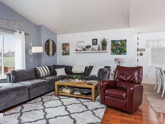 Cute as a button family home in popular south Anc neighborhood! Refreshed paint & flooring, vaulted ceilings & fully south facing front for loads of sunshine throughout. 4 bedrooms & 2 distinct living areas, ideal for families, out of town guests, even roommates. Fully fenced backyard for kiddos & pets, 2 car garage for storage. Terrific location near schools, parks, & amenities. Welcome home!