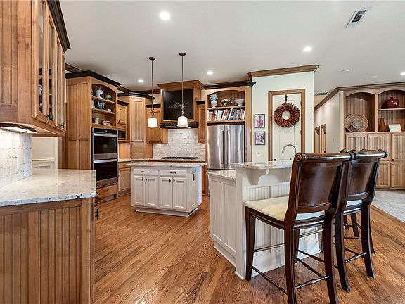 This 4 bedroom house sits on a corner lot with a circle driveway. Walk in the home to 20ft ceilings and new hardwood floors. Plantation shutters, new paint, and carpet throughout. Crown molding adorns every room. New water heater. Remodeled gourmet kitchen with granite countertops, new oven, cooktop, backsplash, dishwasher and sink. Livingroom with wood burning fireplace and formal office to the right and formal dining room to the left. The main bedroom and secondary bedroom are downstairs, while the upstairs hosts 2 bedrooms, bathrooms, and media room. Large hearth room for entertaining. Step outside to a covered patio and pergola while enjoying cookouts. Minutes from the Botanical Gardens and Lake Fayetteville which has a 5 mile walking trail. 15 minutes from I-49, Tyson, and JB Hunt. ADU or In-law quarters. Potential income. Great schools. Harp Elementary, JO Kelly Middle School, George Junior High, Springdale High School.