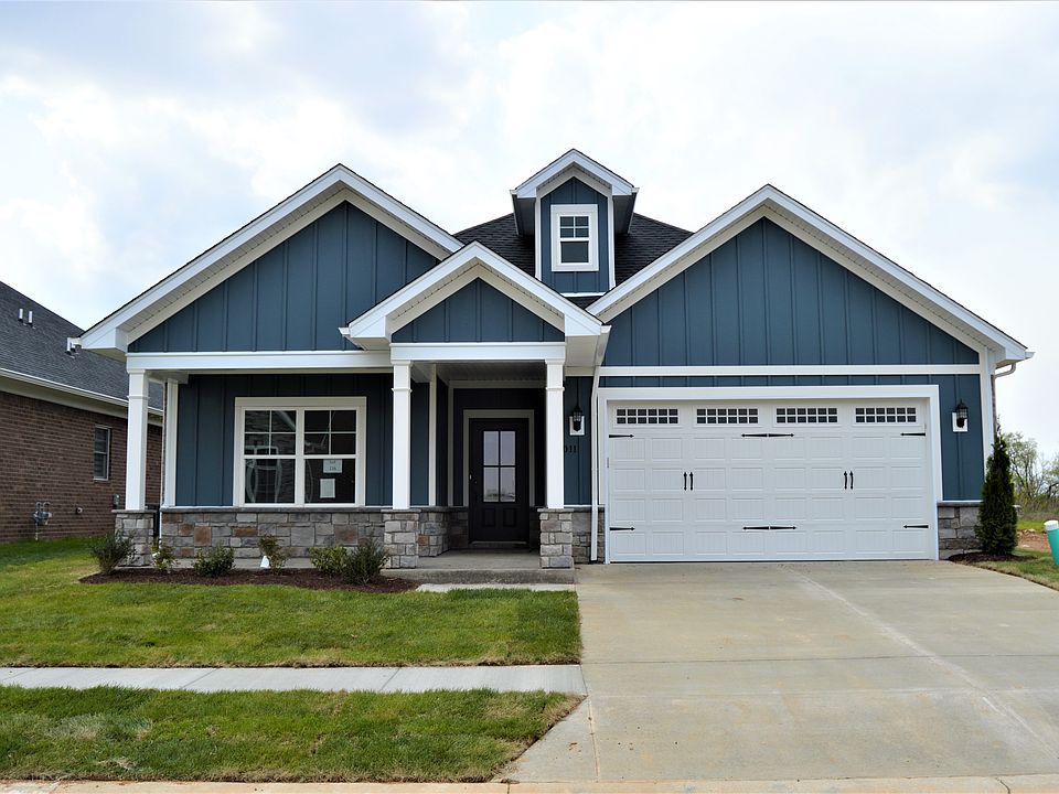 Welcome to the Dover in prestigious Quarry Bluff! This luxurious home is situated on the top of the bluff with a covered porch and a scenic view! Your guests will marvel as they enter the expansive foyer that flows right into the great room, which adjoins the open kitchen area. The owner's retreat is nestled away from the remaining bedrooms for quiet relaxation. The master suite also features an oversized spa shower and large walk-in closet ? all to make this home as comfortable for you as possible. The other bedrooms have easy access to a shared full bath. Large windows allow natural light, further enhancing the airy feel of this sunny, well-designed home. Go on vacation without ever leaving Southern Indiana. Experience all of the amenities of resort-style living right in your backyard! Included in the community is a pool with a clubhouse, private crystal clear quarry with a sandy beach, and tennis courts. Located just 3 minutes from I-265 highway 15-20 minutes from Downtown Louisville!