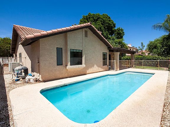 This charming 4 bedroom, 2 bathroom home in Country Meadows features wall-to-wall carpet and a bay window in the living room with a fireplace and sliding glass doors leading to the patio in the dining/family room area. The kitchen includes a dining nook and a breakfast bar. Take a long, relaxing bath in the garden tub in the full master bathroom. Make your way outside to the covered patio, lawn and gated pool. Make it yours today!