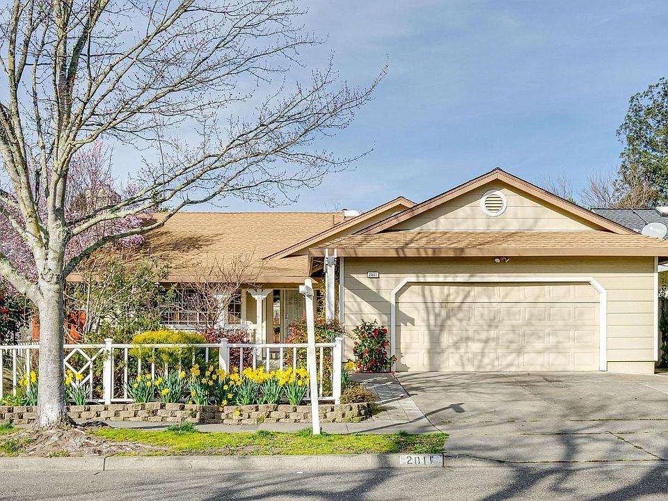 This single story home in West Santa Rosa has 3 bedrooms and 2 bathrooms. As you walk up to the house you are greeted with a variety of flowers, trees, and fruit that are coming into bloom as we approach spring. The living room and dining area have vaulted ceilings for an open feeling. The kitchen has a tile backsplash, garden window by the kitchen sink, refrigerator, stainless steel microwave and stove. There is an inside laundry room that includes a washer and dryer. The laundry room has cabinets with a countertop for folding and sorting clothes. When you walk into the backyard there is a deck, garden beds, fruits, flowers, and plants. This is a yard a gardener can enjoy.