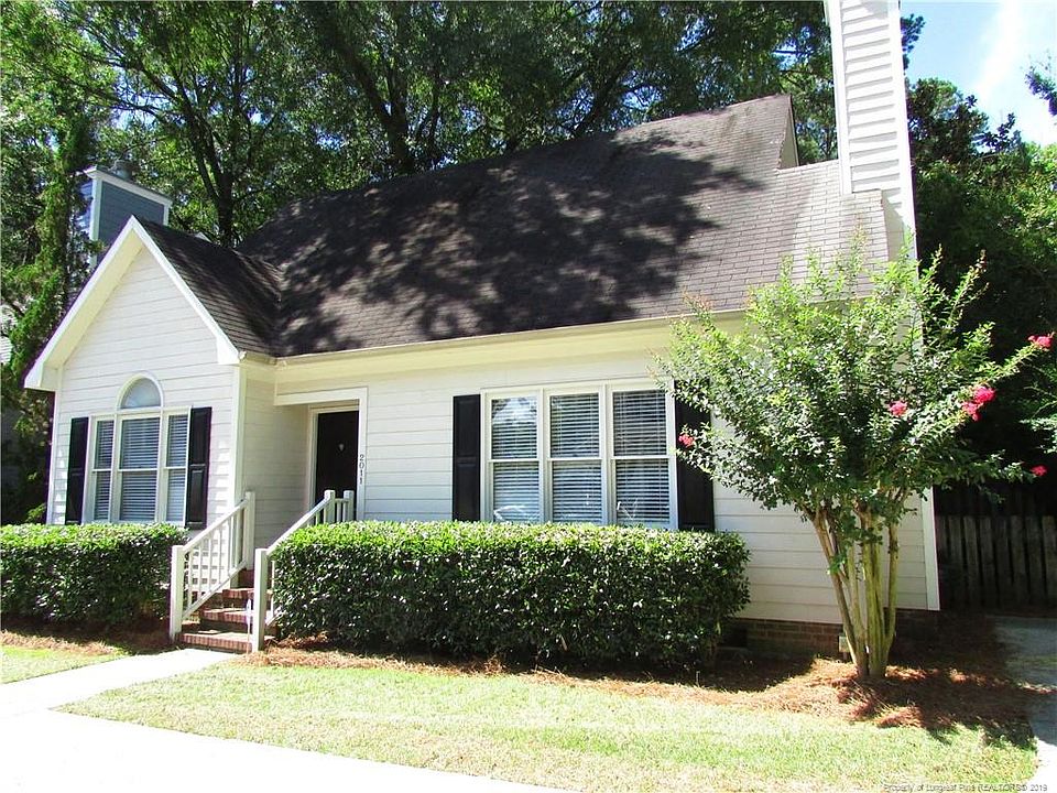 HAYMOUNT $168,500 3BR/2BA. Charming Haymount cottage located at the end of a private dead end street. Perfect location to downtown, shopping, schools and military installation. Adjacent to Terry Sanford Senior High School. A neighborhood park 1/2 block away & features a large playground and picnic facilities. A private intimate, fenced back yard w/ brick patios invites you to enjoy cooking out or your morning coffee. The HVAC is one year old. Hardwood floors are in the foyer, great room and dining area. The Master BR is downstairs. Two BRs and a Jack & Jill Bath are upstairs. There is galley kitchen with pantry and laundry adjacent. The Great Room features a vaulted ceiling and gas fireplace. This home is perfect for someone interested in downsizing, a new family or even as an investment property. Currently, the home is having fresh interior painting done to the first floor and stairwell and the hardwood flooring is being refinished. Outside storage.(2011W)