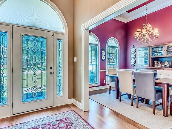 Stunning Wynfield home on a large beautifully landscaped lot. Upon entering the grand foyer with tall ceilings you immediately feel the open layout of this well-designed home. A grand formal dining room with wainscoted walls is off the foyer. Just past the foyer is an inviting living room with astonishingly high double boxed ceilings with with heavy crown molding, windows nearly wall to wall and floor to ceiling, beautiful hardwood flooring, and a picturesque view of the peaceful retreat of the pool and landscaping beyond. The living room also features a warm fireplace flanked by custom built-in cabinetry. A newly updated kitchen with stunning versailles pattern tile, gorgeous exotic granite countertops accented with a glass tile backsplash, stainless farmhouse style sink, stainless appliances, tons of designer cabinetry is just off the living room and features a bar with plenty of room for stools. The master suite is equally as impressive as the rest of the home. It too has the same breath-taking views of the pool surrounded by professional landscaping as the living room does and even has its own door to access the large covered patio out back. The master bath features a huge shower, jetted garden tub, and double split vanities just past his and hers closets. Two spacious guest rooms are on one side of the home and two more on the other side along with 2 full baths as well. There's also a true home-office with built-in cabinetry and bookshelves covering one wall completely. A large laundry room with a utility sink and tons of cabinets for extra storage just down the hallway leading to the huge 3-car garage. Directly off living room a tranquil retreat awaits under an enormous covered patio with the soothing sound of your bubbling pool surrounded by lush landscaping just feet away. Don't miss your opportunity on this one-of-a-kind home! Also outback you'll find a large RV parking pad with power connections.