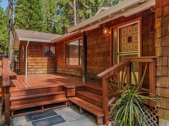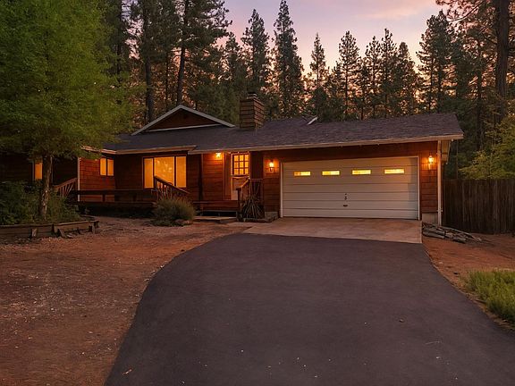 Charming mountain retreat on 1.01 flat, sunny acres! This home is full of character, with excellent bonesready for your personal updates to make it truly shine. Enjoy 3 bedrooms, 2 baths, large office/4th bedroom, and 2,184 sq. ft. of living space with brand-new flooring throughout. The inviting living room features open beam ceilings and a stone fireplace. Open kitchen is functional and ready for your personal updates to make it truly shine. The kitchen overlooks the sunken great room with and skylights and large windows that bring the natural light. Step outside to a beautiful updated deck, expansive covered patio, and a huge backyard with room for RV/boat parking, pets, and more. Enjoy peaceful views of the tall pines and open space from every window. Washer and dryer included, roof clearance in hand, and high-speed internet available. Low yearly road association fee keeps roads maintained and clear of snow. A gorgeous property with amazing potentialmove in and enjoy today while planning your dream upgrades!