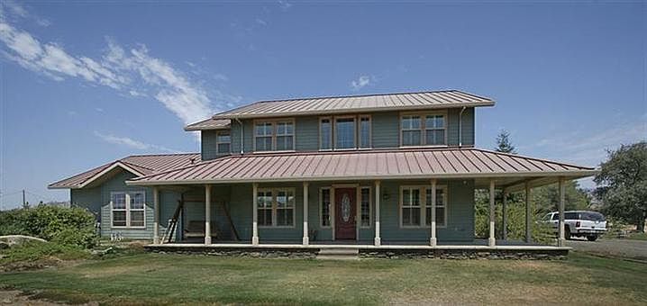 Gorgeous custom 3000 sq ft home with Granite counter tops with granite island w/sink, metal roof, 10 ft ceilings downstairs and 9 ft up. There is a formal dining room with concrete siding and ac ducting is built in the slab foundation for energy efficiency. The 5 acres is all usable with a 2000 sq ft shop and a season creek.