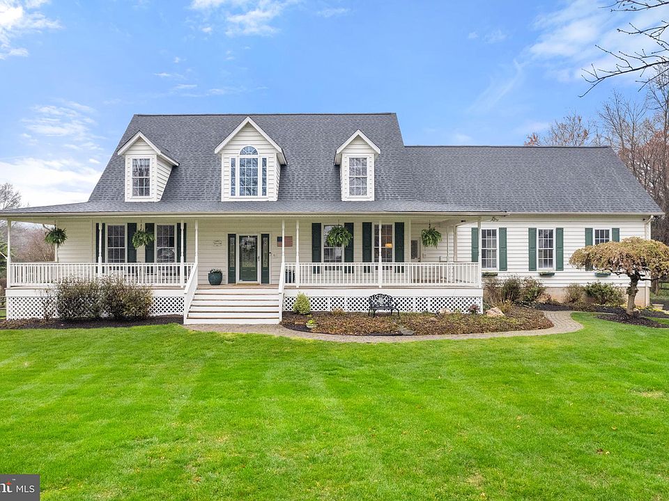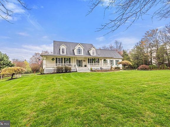 Beautifully maintained Cape Cod Home situated on over 1.1 acres in sought after Broad Run Farms. This 4 bedroom and 4.5 bathroom home boasts almost 4,000 sqft of finished living space on 3 levels. The main level features high ceilings, a beautiful kitchen with island, large 2 story family room with fireplace with great natural light, a first-floor master bedroom and a one of a kind library/office! On the upper level are situated 3 additional bedrooms and 2 full bathrooms, one of the bedrooms has a separate entrance from exterior and could function as a great home office or in-law suite. The basement is fully finished and includes an additional bathroom, rec room with pellet stove, and a walk out. The outdoor living space includes wrap around porches and an amazing screened porch. The large, private lot affords plenty of space for your enjoyment and is complemented by mature landscaping. Upgrades include HVAC (replaced 2022) and whole house generator! No HOA. The fantastic location is convenient to major commuting routes. This house checks all the boxes, don’t miss it!