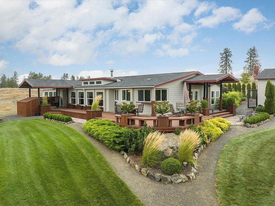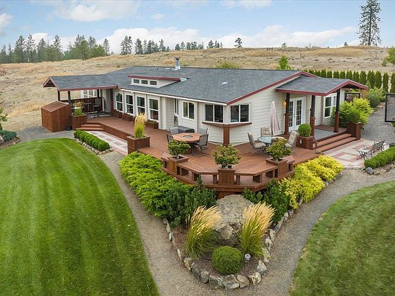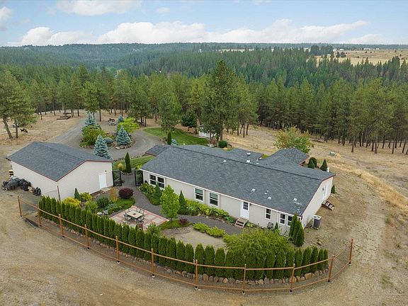 Discover your dream retreat! This 2008 home sits on 15 serene acres, offering views over the majestic Deep Creek Canyon. Step onto your outdoor decks to take in the breathtaking scenery and landscaping. Relish in the privacy and tranquility of the fenced patio off the back of the home, while outdoor entertainment beckons with horseshoes, fire pit, and scenic trails. Th 2720 SF home features an open layout interior is bathed in light from skylights, and the kitchen sink even boasts canyon views. Primary suite is a private retreat with dual closets and french doors outside. Escape the city's hustle and bustle and make this tranquil haven your own. A 24X40 Shop awaits all of your vehicles and projects. Just a short 25-minute drive from downtown Spokane. Many updates and amenities that you truly need to see to believe! Buyer has option to purchase adjacent 15 acres for additional price.