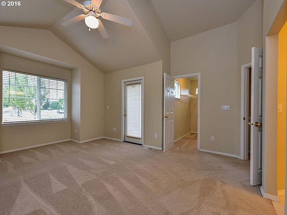 Beautiful 3 bedroom West Linn townhome located in Hoodview Estates, within walking distance to parks, scenic trails, shopping, and Award-Winning schools. This end-unit home features wood flooring, gas fireplace, vaulted ceilings in all bedrooms, A/C, open floor plan design, with a deck backing to a quaint green space. The Master includes a large en suite bathroom, walk in closet, and a bright lovely private patio.