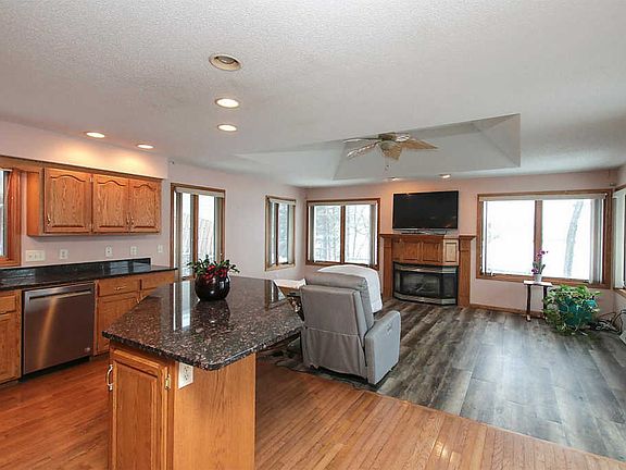 Beautiful 3 bedroom, 3 bath rambler on 1.7 acres at the end of a cul de sac on Campbell Lake with 467' of lake shore. Granite countertops, center island, tiled & hardwood floors, 2 natural gas fireplaces, 3-season porch w/in-floor heat & mini split cooling, vaulted ceiling, master w/walk-in closet and private bath. Attached garage is insulated and heated. Unique shed has log and stone walls w/concrete patio. Radon mitigation system. America's Preferred Home Warranty included.