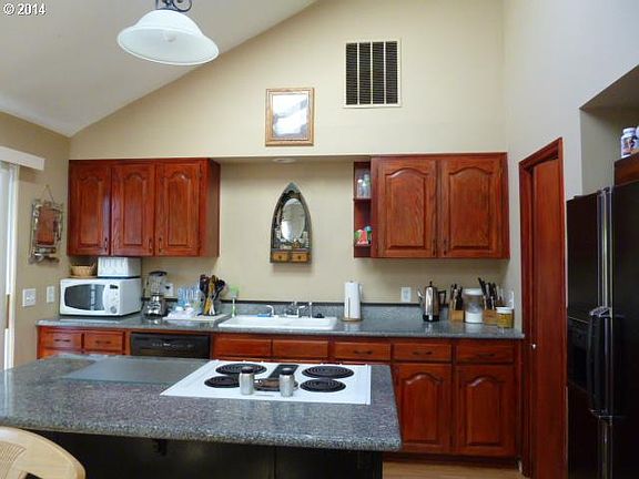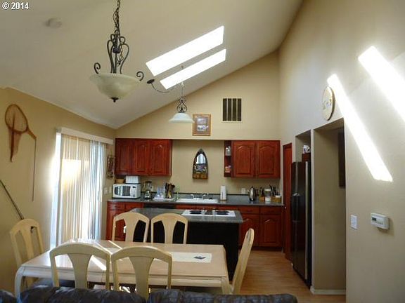 Nicely remodeled, 4bdrm, 1ba, newer kitchen w/island, granite counter tops, open floor plan, wood stove in living room, skylights, vaulted, master on main, utility room w/sink and storage area, spiral staircase to 2 upstairs bedrooms, newer windows, tool shed, fenced back yard, deck, car port,