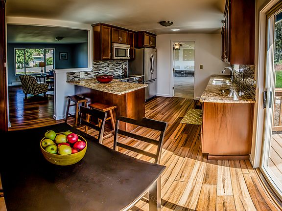 Immaculate rare rambler with 2 car garage! New bamboo hardwood floors, soft close cabinets, granite countertops, stainless appliances, water heater, efficient hydronic heat. Bullnose corners everywhere. Recessed cabinets give you more space in fully remodeled bathrooms. The thought, vision and attention to detail in the work done is of the highest quality. Your new roof spills water into new gutters that drain to the street so your new landscaping won't get muddy. New, New New!