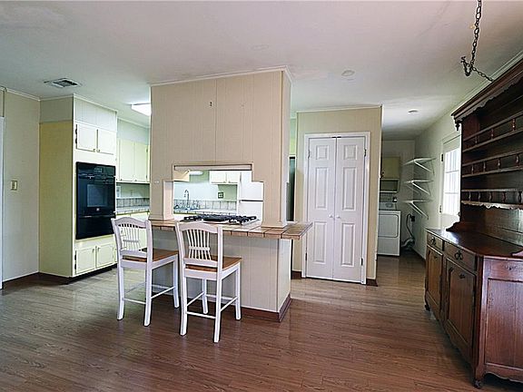 3 bedroom 2 bath home in Airline Park features an updated primary bath with walk in glass shower. Charming screened porch! Kitchen w/ breakfast bar, island w/ cooktop, ceramic counters, built in oven & pantry! The home features a generator & hurricane shutters. Central AC & heat. Laminate wood flooring throughout kitchen, dining room, den & 2 bedrooms. Inside laundry room w/ washer & dryer! 2 sheds - one with A/C. Termite contract. Lots of living area for entertaining! Existing flood insurance $611/year.
