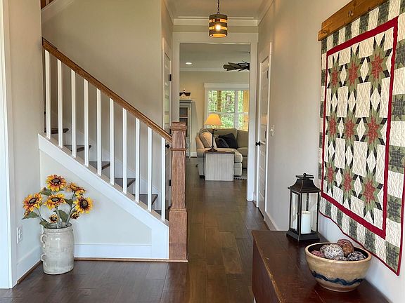 PRICE REDUCTION! Huge porch with glass double doors greets you into a spacious foyer. Wide plank hardwood floors throughout the main level with lots of natural light, crown molding, tall ceilings, and ample space. Dining room fits full size dining suite. Large laundry room! Kitchen features quartz counter tops, HUGE island w/farmhouse sink, coffee bar, and plenty of cabinet space. Eat in breakfast area overlooking the woods. Or sit out back on the screened in porch and enjoy your breakfast. Gas fireplace in the living room. Master suite is tucked away for ultimate privacy. Master bathroom has his and her sinks, claw foot bathtub, and beautiful tiled shower w/frameless glass. 3bdrs upstairs; 1 w/ ensuite bathroom; 2 additional bdrs and another full bath upstairs. BASEMENT THEATRE with ALL FURNITURE, SURROUND SOUND EQUIPMENT AND 85"TV REMAIN. Office, kitchenette, bedroom (no closet), full bathroom also in basement. Neighborhood grassy area right across the street!